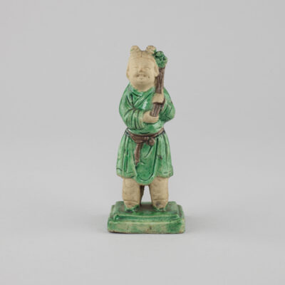 £10,500Japanese porcelain pale celadon glazed pinched ‘lotus’ flower-shaped beaker vase, with tall slender body, gently splayed foot and wide pinched flower rim, covered overall on the base and interior in an even pale celadon glaze thinning at the rim and edge of the foot rim, the flat foot unglazed revealing the biscuit body.